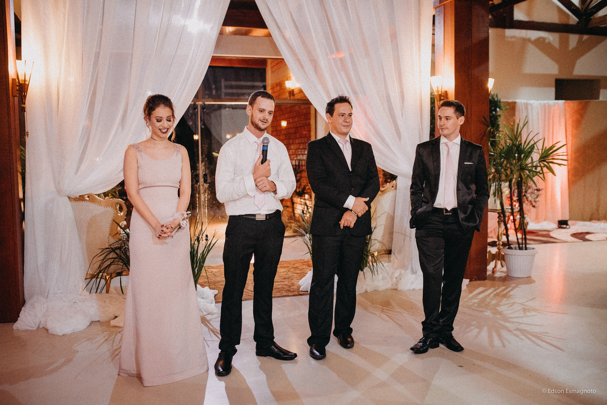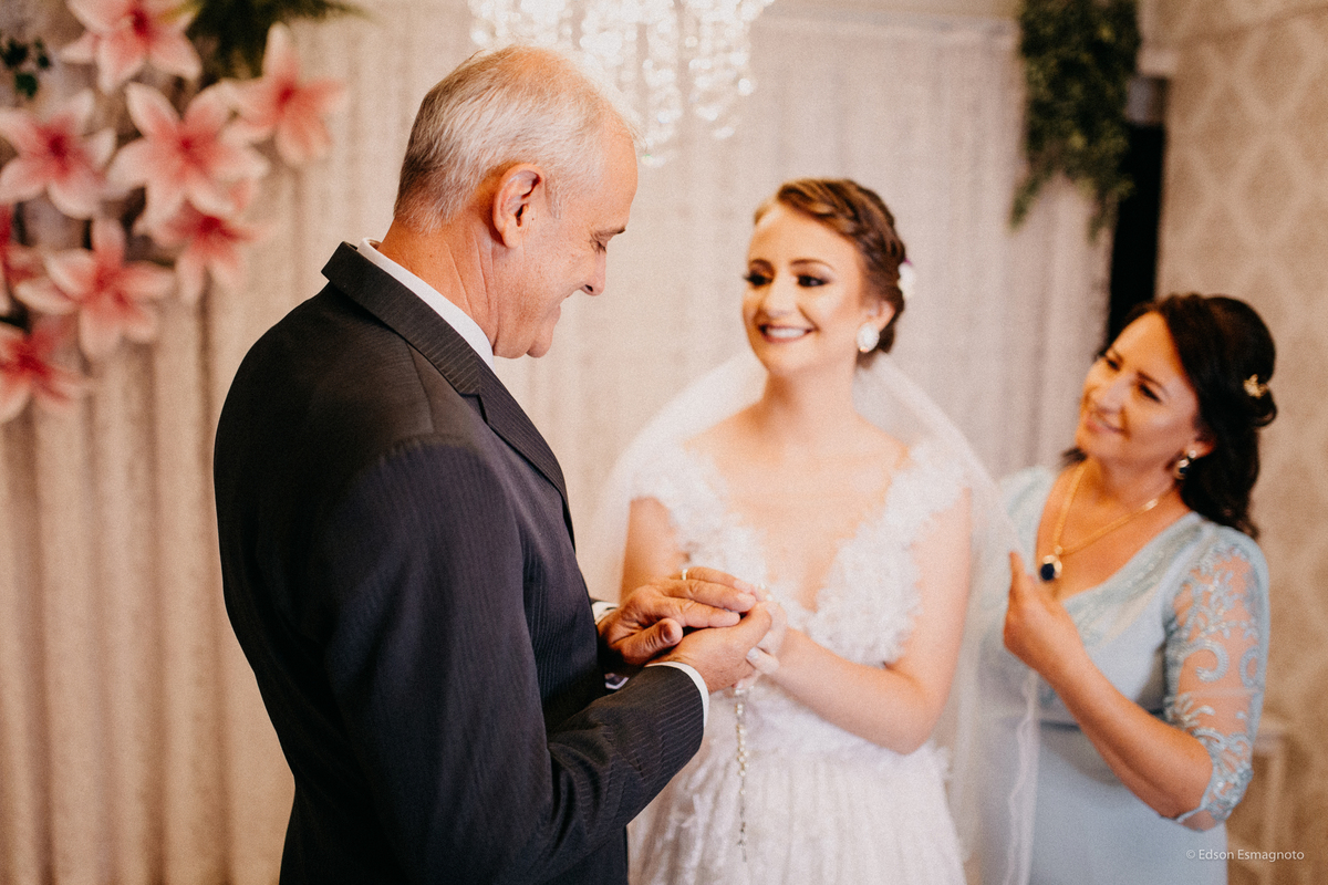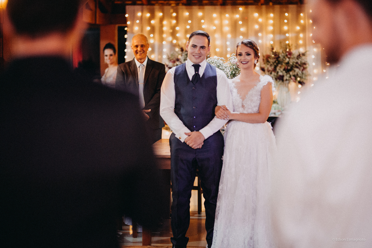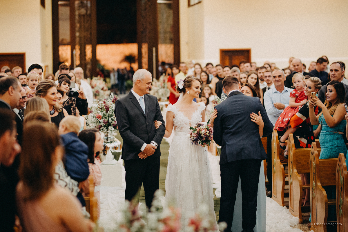 O abrir da porta da igreja de braços dados com nossos maiores heróis e exemplos. O entrar, nossa musica, nossos amigos e familiares, nos olhando carinhosamente e nos desejando o bem! Nosso encontro, cada palavra dita, cada musica... inexplicavelmente especial! Inicio de nossa família abençoada por Deus, pais, irmãos, familiares e amigos.